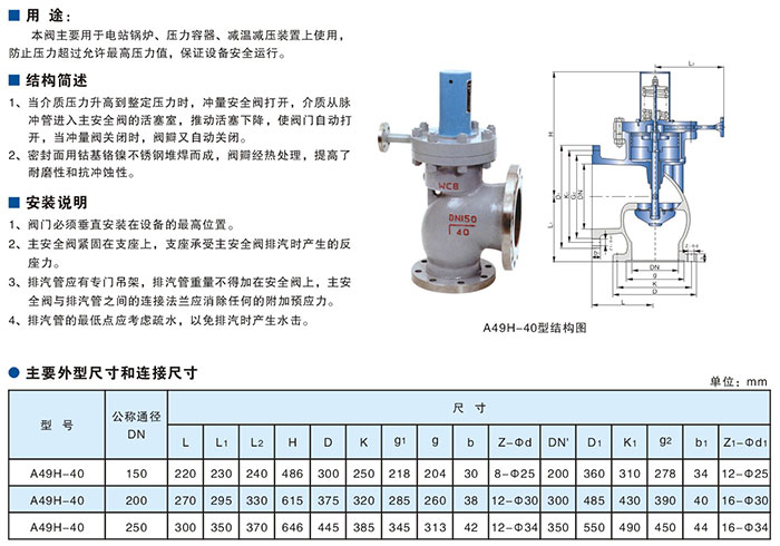 产品名称:A49H-40型主安全阀